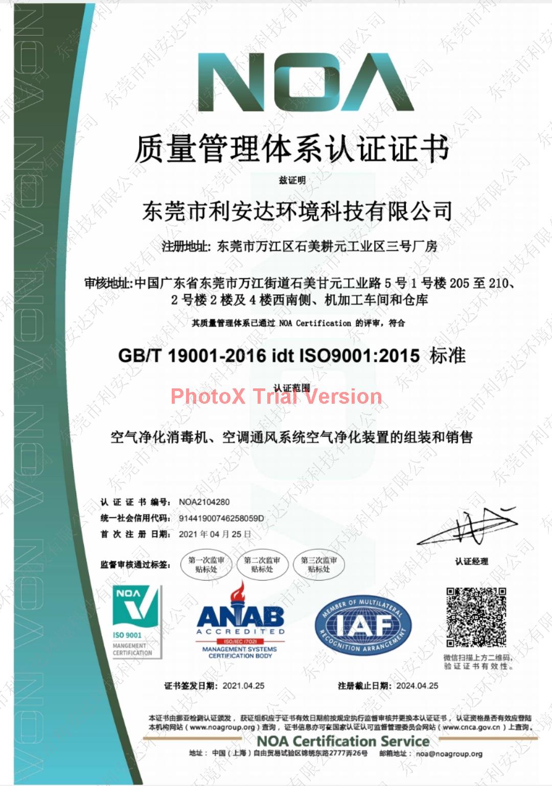 東莞市利安達環境科技有限公司隸屬利安達集團,致力于醫療、商用、家用、教育系統、中央空調系統領域的潔凈空氣解決方案,是一家集空氣凈化消毒機的研發、生產、營銷于一體的國家高新技術企業